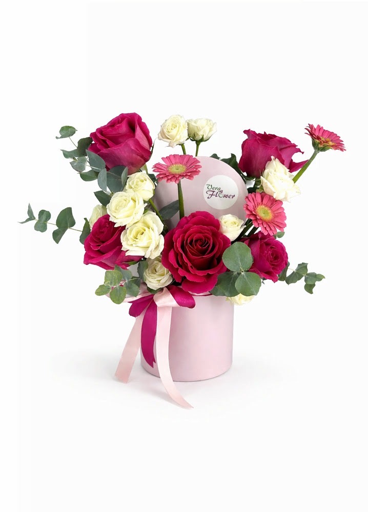 Prețul acestui aranjament elegant oferit de florăria Vera Flower include o felicitare cadou, pe care ne vom asigura să o personalizăm conform dorințelor tale!
